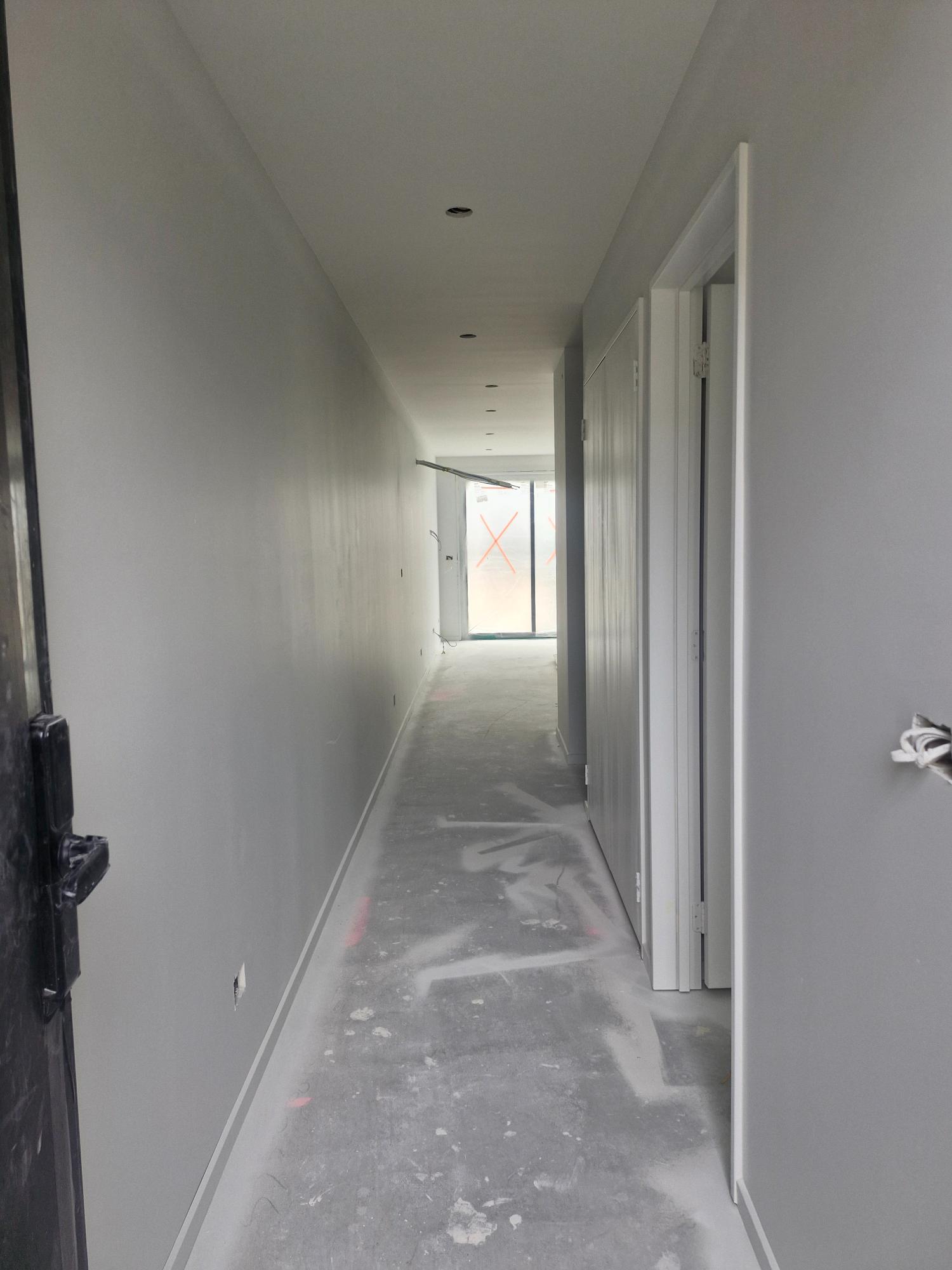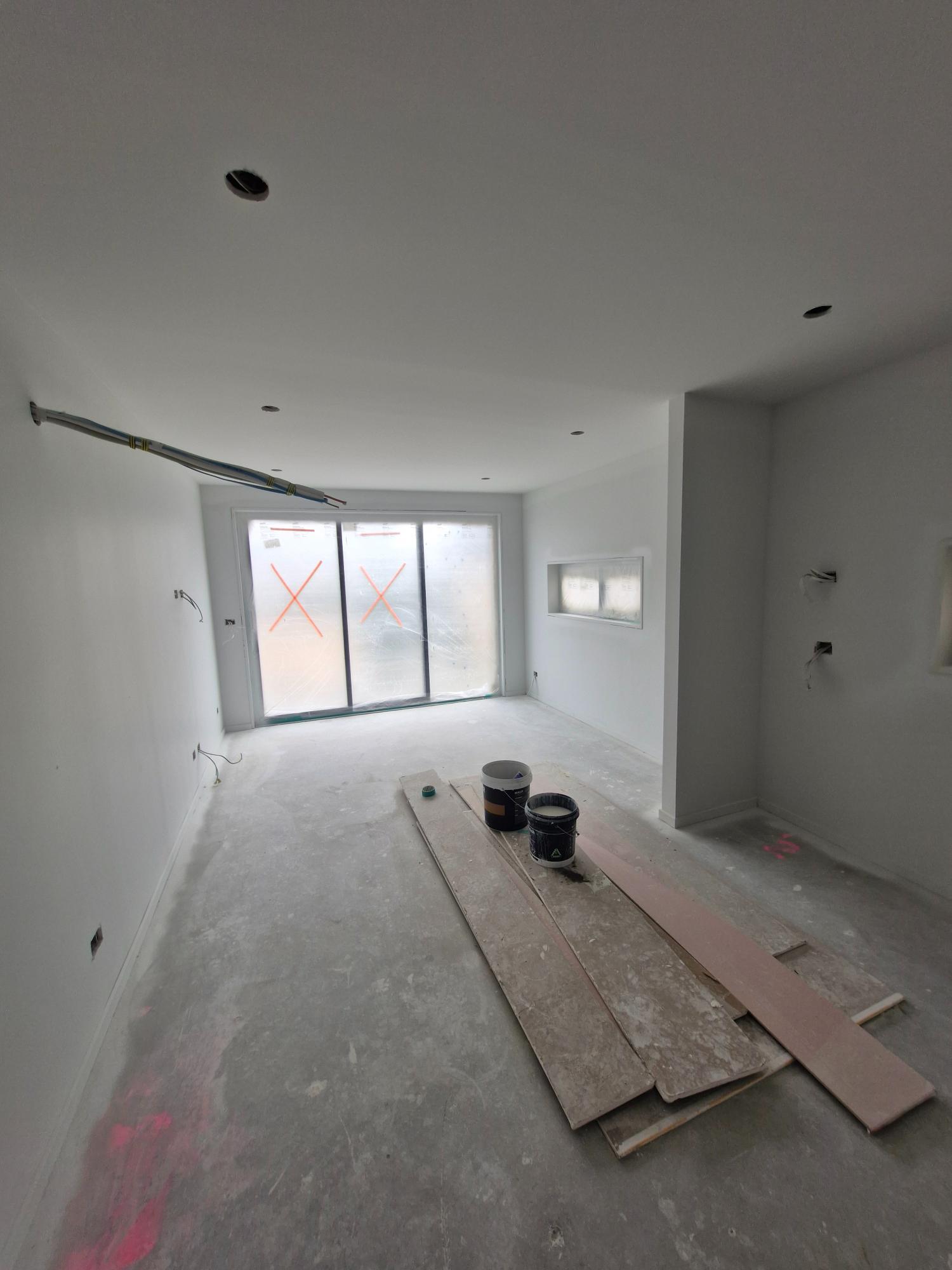 - During this stage, the internal walls are Gib-stopped and painted. Gib-stopping is plastering off all the screw holes and joins to the Gib-board to make all the walls smooth which are then painted ready for the fit-out works.
