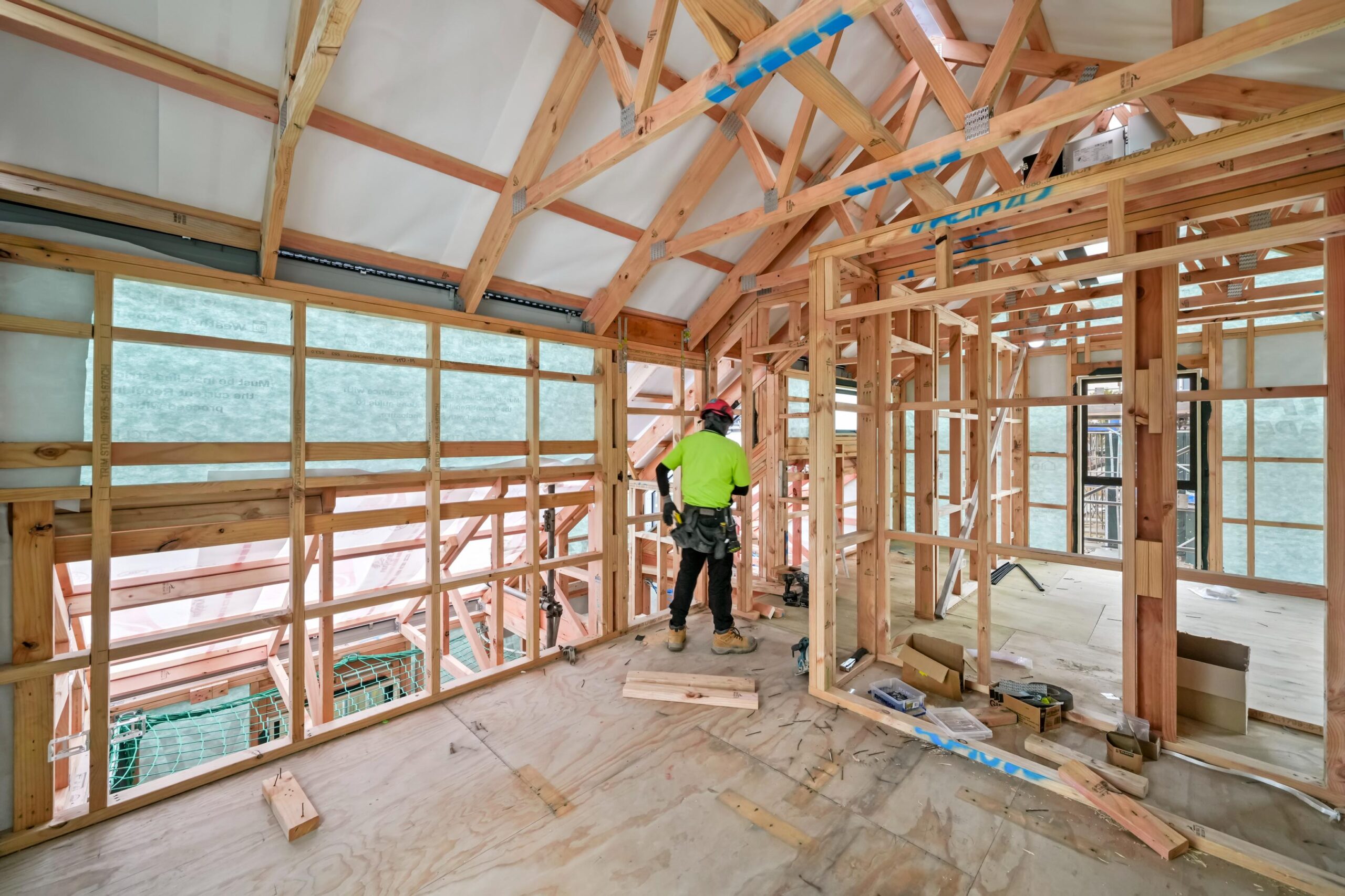 • The internal works involve installing the services in the walls (plumbing and electrical cables), installing insulation and installing Gib-board to the walls. Once installed, our Structural Engineers and the Council will inspect the house and provide a ‘sign-off’ before the Gib-board layer is installed.