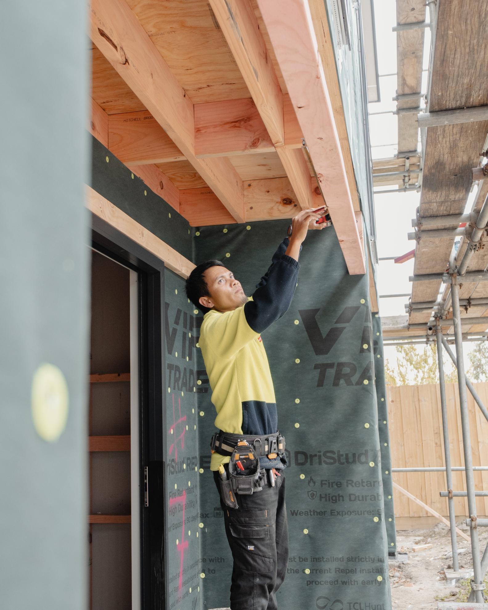 • After the timber framing, the roof is installed, which protects your house from the elements. For all our roofs, we use colour-steel roofing that carries a 30-year manufacturer’s warranty, which is important to ensure your house stays dry.