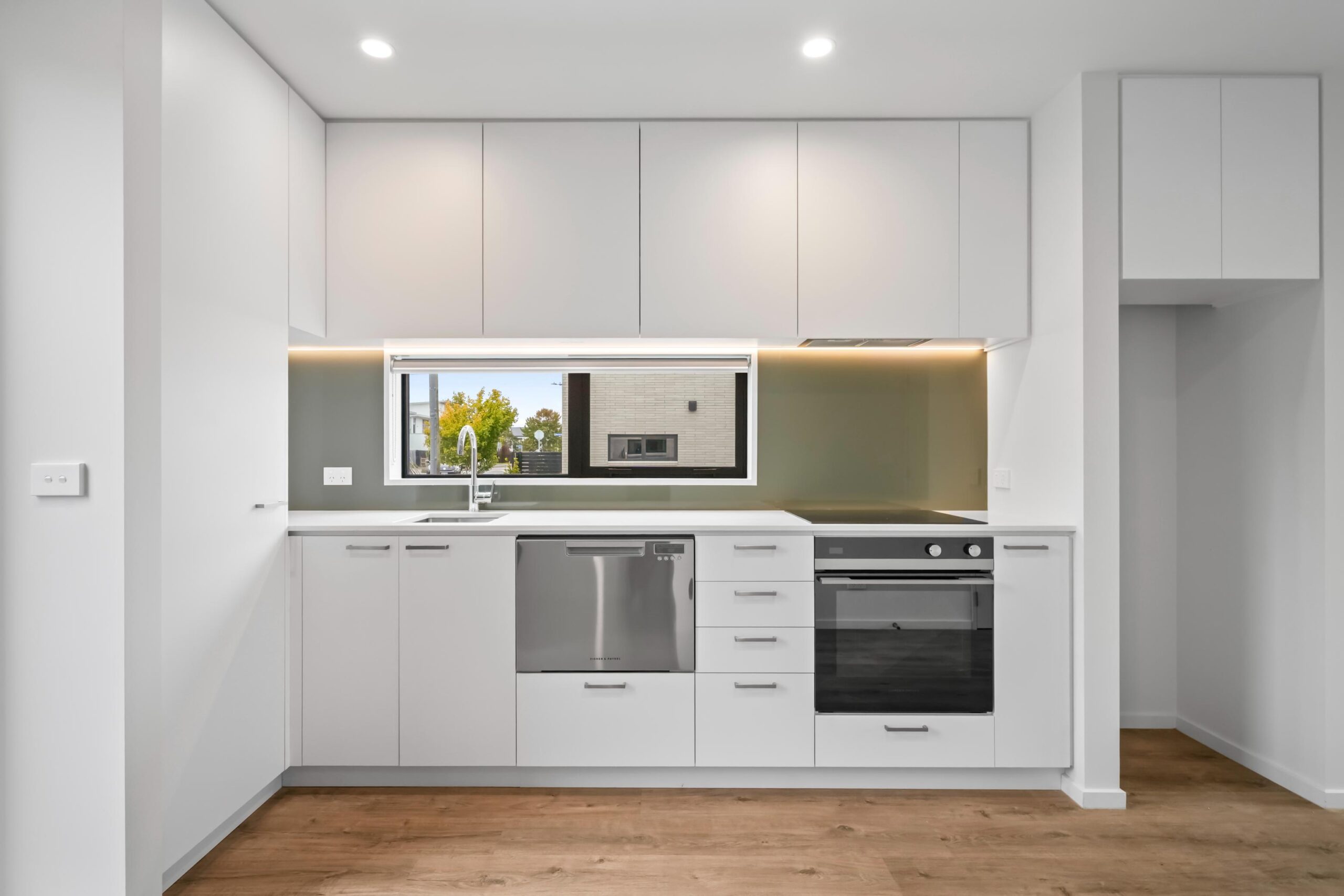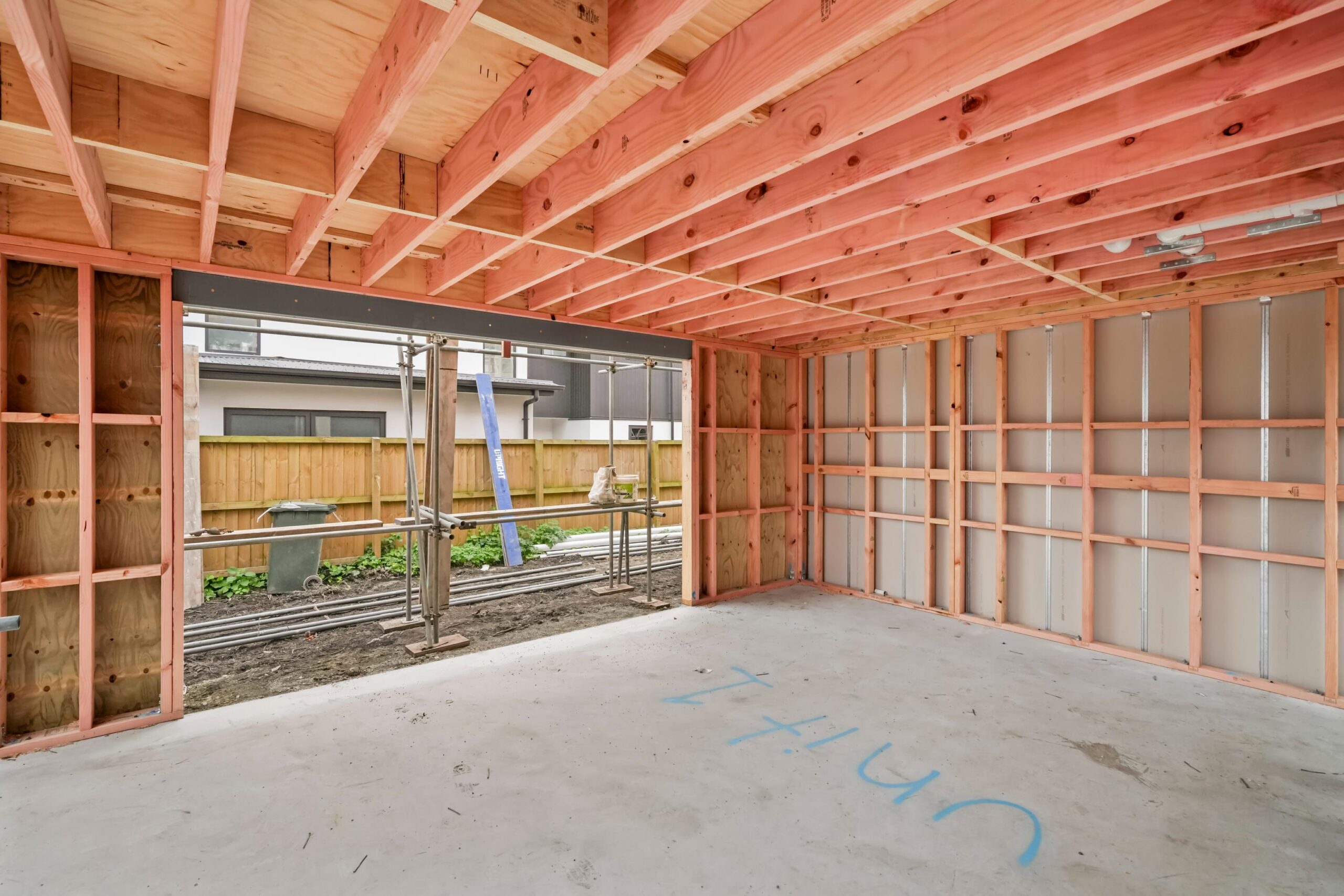 • During this stage, the internal walls are Gib-stopped and painted. Gib-stopping is plastering off all the screw holes and joins to the Gib-board to make all the walls smooth which are then painted ready for the fit-out works.