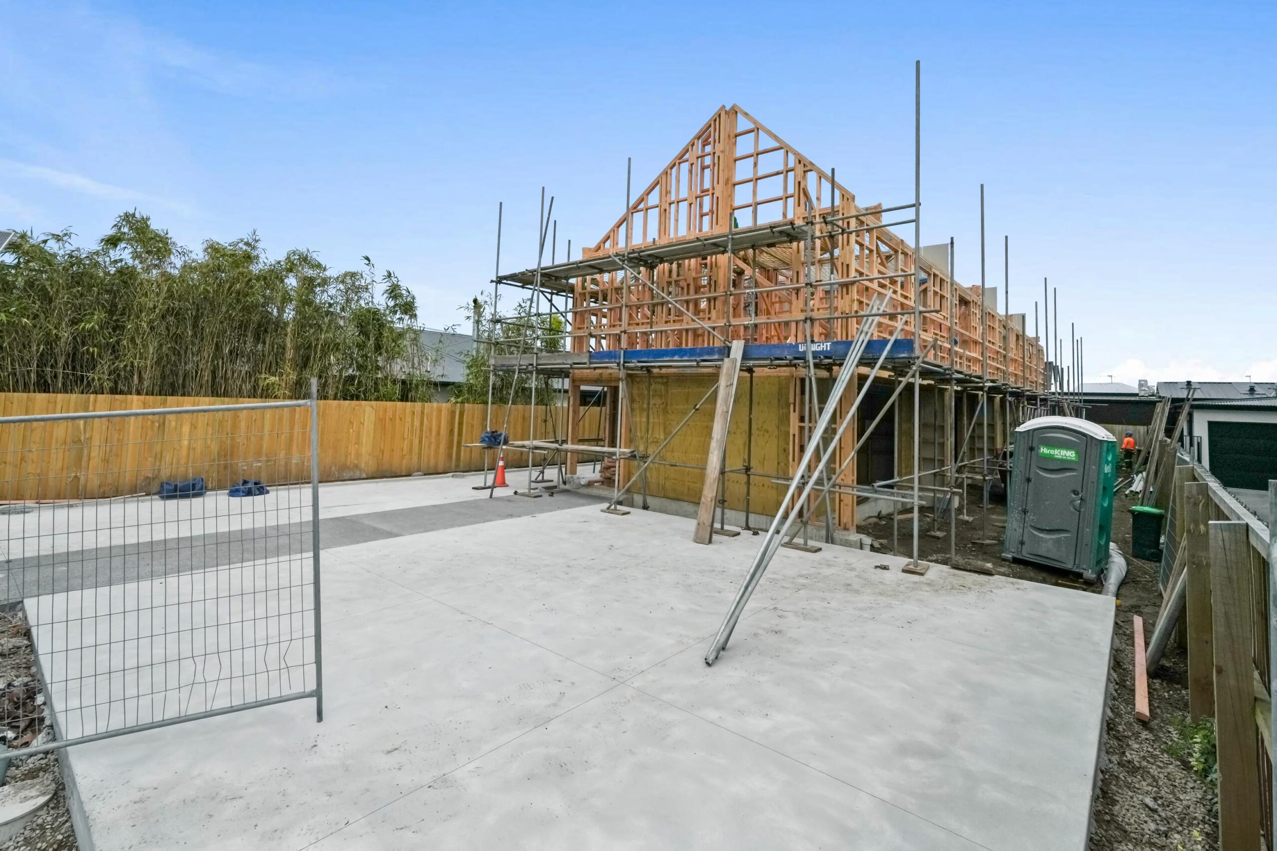 • At this point, the concrete floor slabs are completed, and we will proceed to start framing each house.
