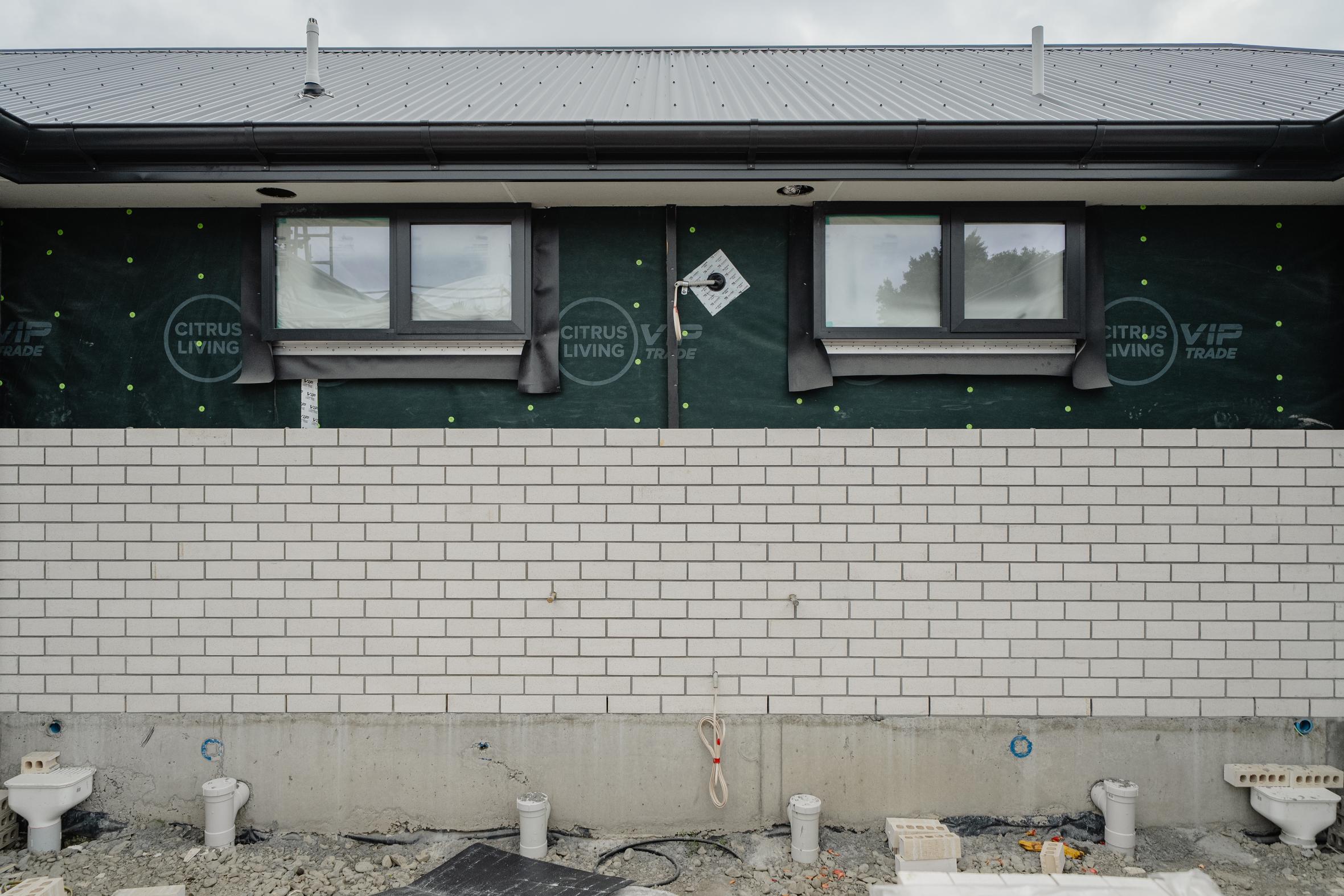 • During this stage, the cladding will be completed, the windows installed, and the front door installed, which makes the house “lockable”. It is a great milestone to have completed because it means it’s a lot safer to start putting in things like appliances and fixtures (e.g. light fixtures, taps, etc.) into your house.