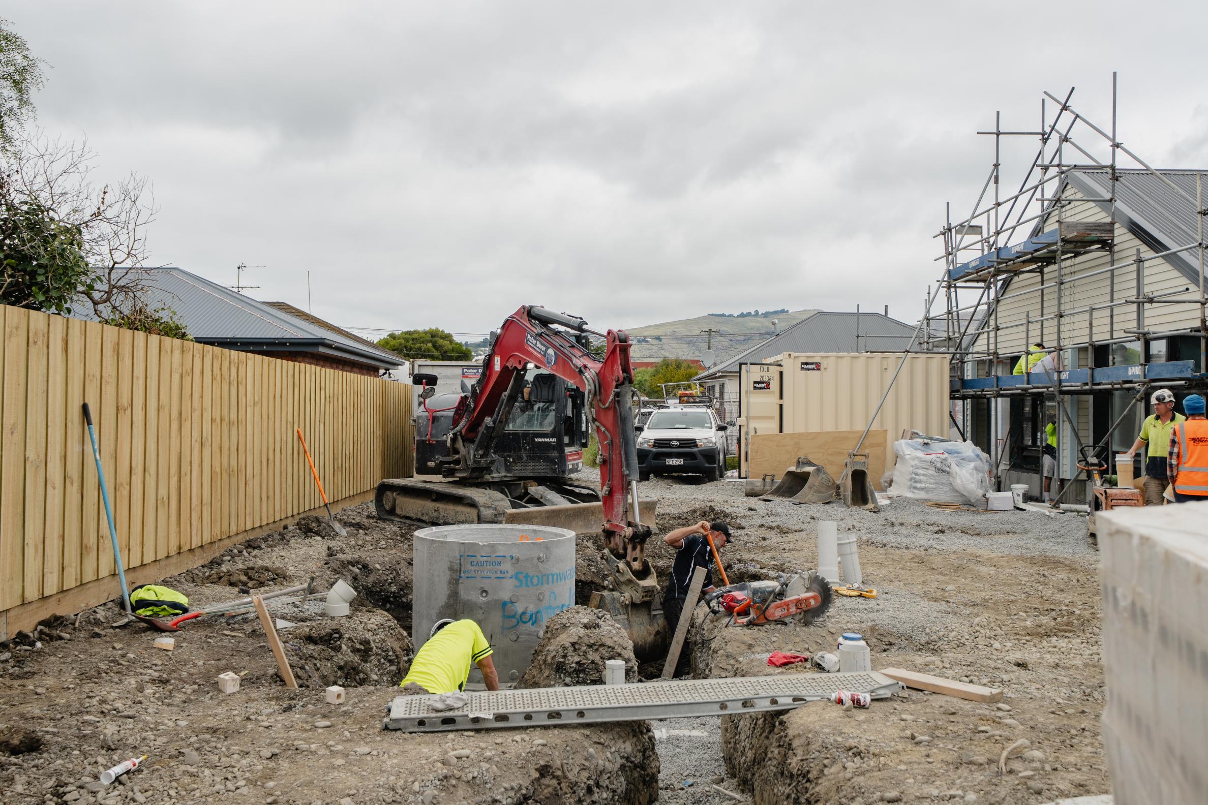 • Civil works include the installation of all underground services. This ensures the houses will have a sewer connection, stormwater connection (to collect rainwater), electricity connection, water, and high-speed internet.